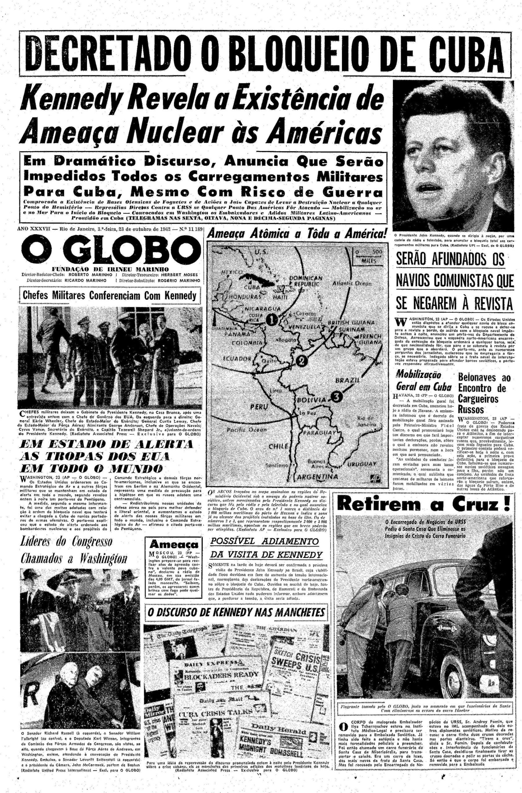 – O presidente dos Estados Unidos, John F. Kennedy, aprovou “embargo total” contra Cuba.