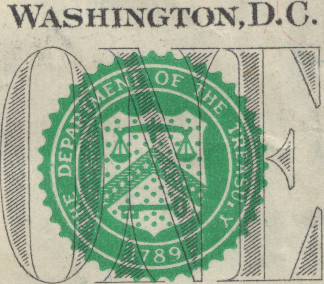 A nota foi desenhada e pintada pelos maçons. Ela sofreu muitas mudanças ao longo de sua história. Todas as notas de dólar são fornecidas pela Reserva Federal e 45% da moeda e.u.a. está em notas de 1 dólar, ou seja isto para dizer a que ponto é difundido o símbolo (embora 99% das pessoas nunca notou isso). A vida média de uma conta de 1 dolar USD é de 21 meses. A pessoa representada no bilhete é o maçom George Washington. Informações adicionais mas, as notas são entregues pela reserva federal em caixas rodeadas de tanga azul…